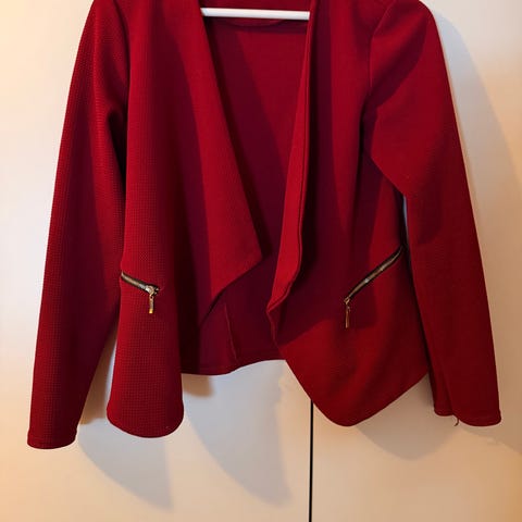 Blazer fra det danske merket Imitz i en nydelig tomatrød farge. Blazeren har rund hals og glidelås foran. Perfekt til hverdagsbruk. Størrelse M, men passer også L.