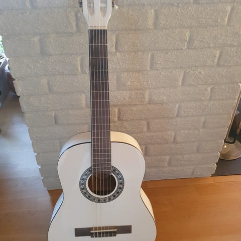 Gear4music CG-1/2BK junior 1/2 klassisk gitar i svart utførelse. Modellen er en halvtoms nylonstrengsgitar tilpasset barn. Gitaren har tradisjonell klassisk kropp med rund lydhullrosett og standard stemmeskruer for nylonstrenger.