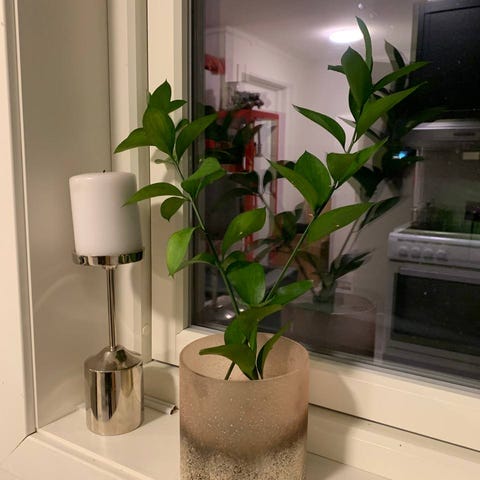vase i svart farge. Vasen har en organisk, rund form med to kuler stablet oppå hverandre. Passer til mindre planter eller snittblomster og kan brukes som bord- eller vindusdekorasjon i ulike rom i hjemmet.