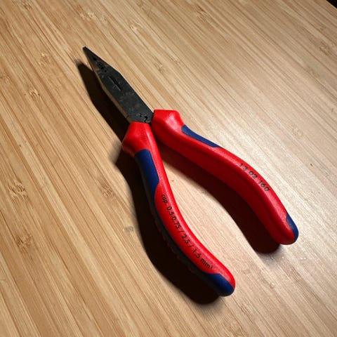 Knipex 12 42 195 automatisk avisoleringsverktøy for presis fjerning av isolasjon på ledninger. Verktøyet har justerbar mekanisme og gripehåndtak med rød og svart utførelse. Egnet for arbeid med elektriske kabler og ledninger der jevn avisolering er nødvendig.