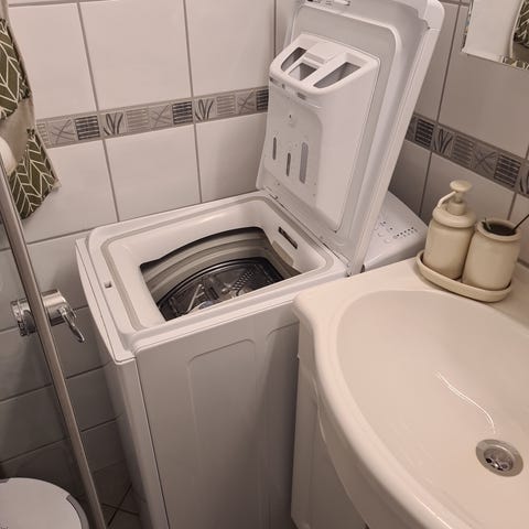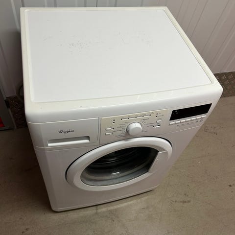 Whirlpool toppmatet vaskemaskin som har noen år igjen. Maskinen fylles fra toppen og har et oversiktlig betjeningspanel med programvelger og display. Egnet for plassering der det er begrenset gulvplass, siden den har smalere bredde enn frontmatede modeller. Toppmatet konstruksjon gir enkel tilgang til trommelen ovenfra. Standard tilkoblinger for vann og avløp på baksiden. Passer til vanlig klesvask i husholdning.