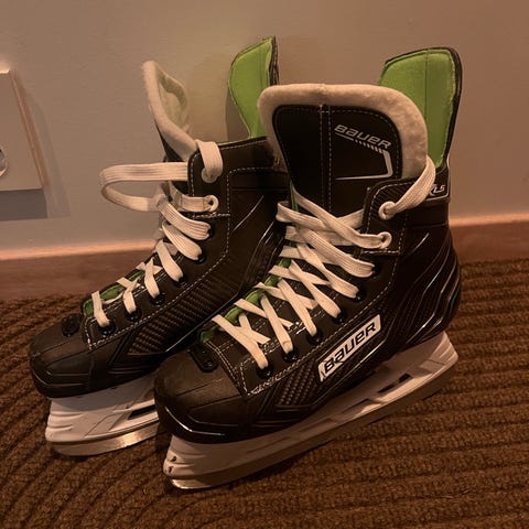 Bauer ishockeyskøyter for barn i størrelse 34( jeg anntar størrelsen er 34 da innvedig cm mål på sålen er 21,3 cm)