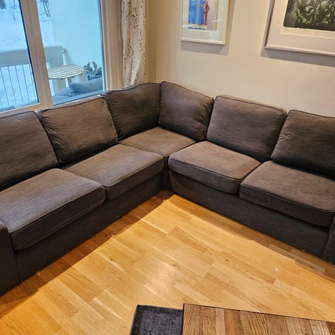 Kjempegod å sitte i. Endene kan enkelt skjules ved å ha pledd hengende over, evt så er det mulig å kjøpe nytt trekk på IKEA.