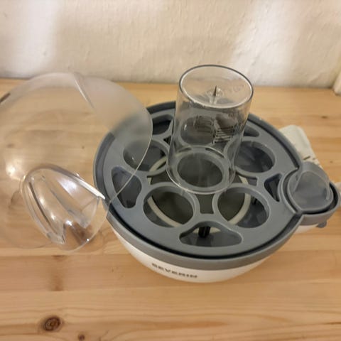 Luftfukter. Enheten har justerbar styrke via dreiebryter på fronten. Egnet for innendørs bruk for å tilføre ekstra fuktighet til romluften. Enkel, sylinderformet konstruksjon som kan plasseres på gulv eller bordflate.