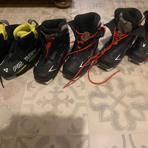Langrennsstøvler og langrennsstaver i ulike modeller og størrelser, se bilder for beskrivelse. Selger også et par ski, smal type.