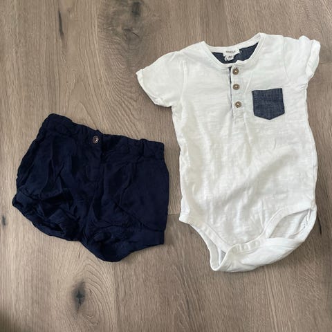 Newbie kle for gutt i størrelse 80. Langermet modell i myk bomull med grønt rutemønster. Skjortekrage og knepping foran, samt lukking i skrittet for enkel av- og påkledning. Egnet til hverdagsbruk eller mer pyntede anledninger.