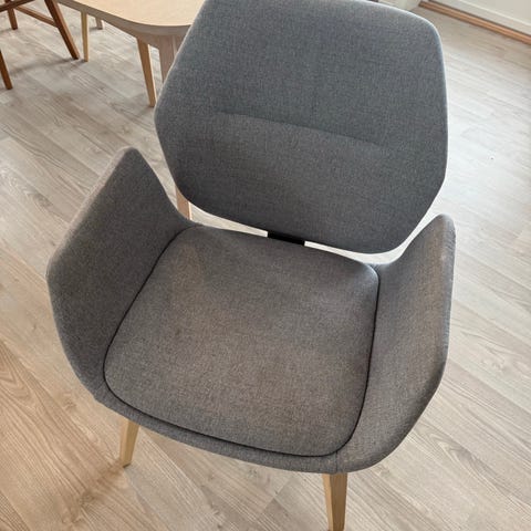 Bruksmerker på alle stoler. Den ene har fått blå malingsflekk på seg, se bildet