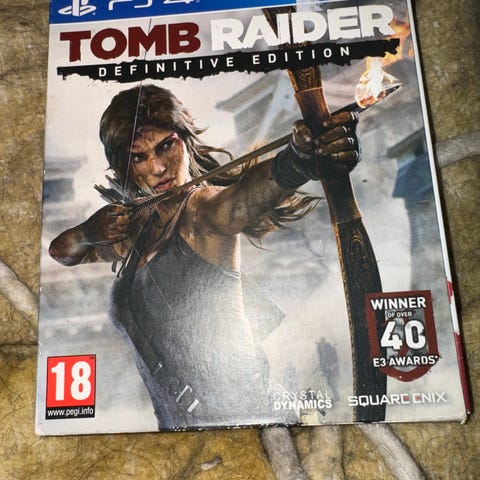 Rise of the Tomb Raider 20 Year Celebration Playstation 4 spill. Fysisk utgave på Blu-ray‑plate i standard PS4-cover. Spillet er merket med aldersgrense 18 år og er utviklet for bruk på Sony Playstation 4-konsoll. Utgaven inneholder hovedspillet Rise of the Tomb Raider samt innhold knyttet til 20-årsjubileet for serien, slik det fremgår av coveret.