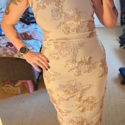 Noelle rosa/gull festkjole, str L. Denne er brukt 5 ganger. - 500kr