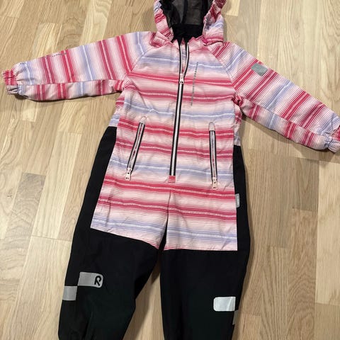 H&M parkdress for jente i størrelse 98. Parkdressen er gammalrosa med mønster og laget i polyester. Den har hette med fuskepelskant, glidelås foran og flere glidelåslommer. Strikk nederst på bena som er litt slitte ( naturligvis ) og forsterkede partier på knær og sete gir bedre passform og funksjon ved lek ute. Materialet er egnet som yttertøy for barn i barnehage- og småskolealder. Pent brukt, ser helt ny ut minus strikkene til under skoene. Lett og ledig og bevege seg i! God og varm, barnet var alltid varm når vi pakket henne ut av den.