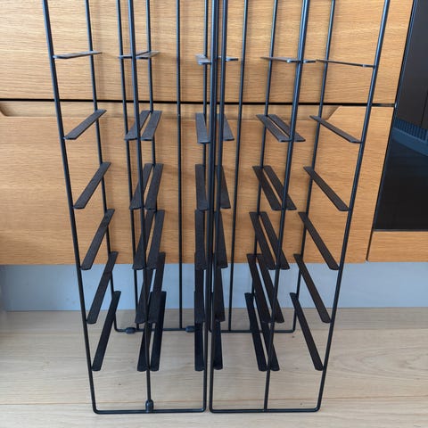 2 stk. stilrene CD stativ fra Høigaard Design of Denmark til oppheng på vegg. Plass til ca. 80 CD’er pr. stativ. Kjøpt hos Blaamann møbler i Asker.