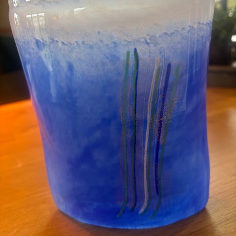 Reservert! Stor Hadeland «Skjærgård» vase i munnblåst glass – grønn kant