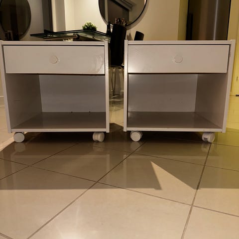 Selger to svarte nattbord med paljetter. Ikke noe synlige merker.