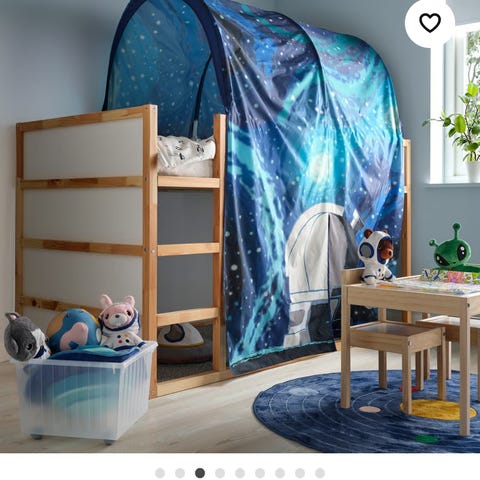 IKEA lekekjøkken i tre med hvite fronter. Kjøkkenet har topp med integrert platetopp med to kokeplater og vask med kran. Under benken er det skap med dører og åpen hylle for oppbevaring. Over benken er det ekstra hylleplass og stang til oppheng av tilbehør. Egnet som lekekjøkken for barn innendørs.