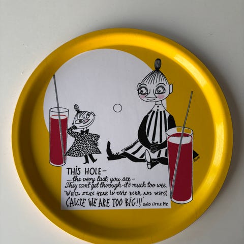 «Mummi brett Lille My gul fra Muurla er laget av finsk bjørkefinér og har et avlangt format på 13x27 cm. Det fargerike motivet er hentet fra Tove Janssons originale illustrasjoner og gir brettet et lekent og samtidig tidløst uttrykk. Brettet er både lett og robust, og passer godt til servering av småretter eller som del av interiøret.