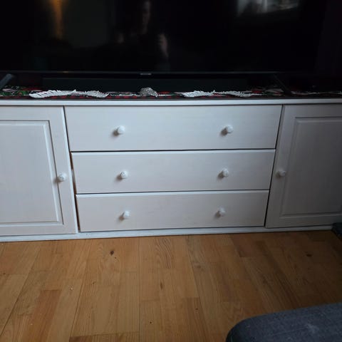 Tvbenk hvit med 3 skuffer