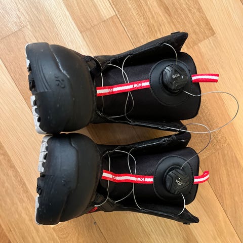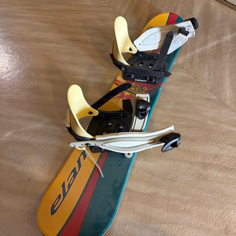 Burton snowboard med bindinger og Head snowboardstøvler.