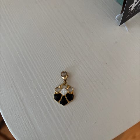 Usikker på hva det andre materialet er, mulig perlemor. Veier ca 16g.