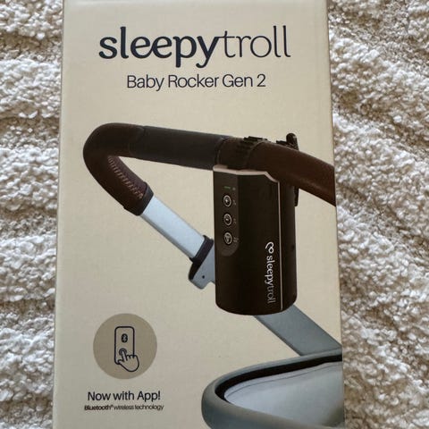 Sleepytroll Baby Rocker Gen 2 er en elektrisk vuggeenhet som festes på barnevognhåndtak eller lignende for å gi jevn vuggebevegelse til baby. Enheten har innebygde sensorer som registrerer bevegelse og kan automatisk starte vugging ved behov. Produktet er beregnet for bruk med barnevogn og lignende utstyr i henhold til produsentens anvisninger.