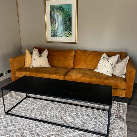 Stuebord i mørk eik - bygget selv. Lengde: 100x Bredde: 65x Høyde: 36. Pris kan diskuteres.