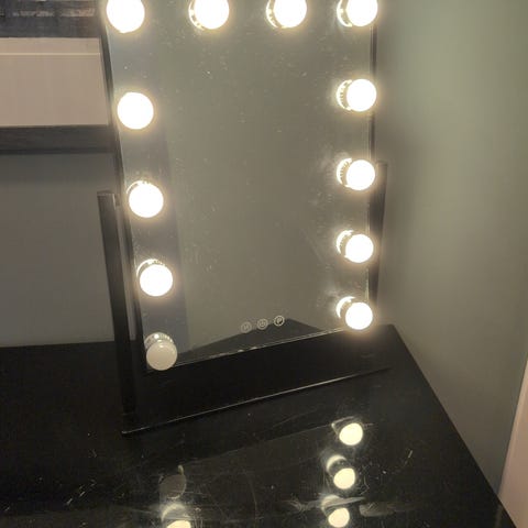 Sminkespeil med seperate lys på siden fra IKEA selges samlet.
