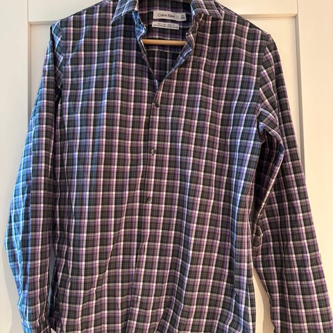 Calvin Klein skjorte for herre i størrelse S. Skjorten er laget av 100 % bomull og har rutete mønster i lyse toner. Den har lange ermer, krage og knappelukking foran. To brystlommer med klaff og knapp. Passer til hverdagsbruk eller mer formelle anledninger avhengig av styling.