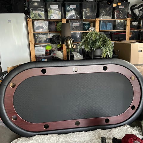 Pokerkoffert med sjetonger og terninger. Kofferten inneholder flere rader med sjetonger i ulike farger, samt terninger og dealer-knapp. Leveres i metallkoffert med håndtak og låsbare spenner. Egnet til pokerspill og andre kort- og kasinospill hjemme eller på hyttetur. Mangler kortstokken. Inneholdet er så å si ubrukt men noe kosmetiske merker på kofferten.