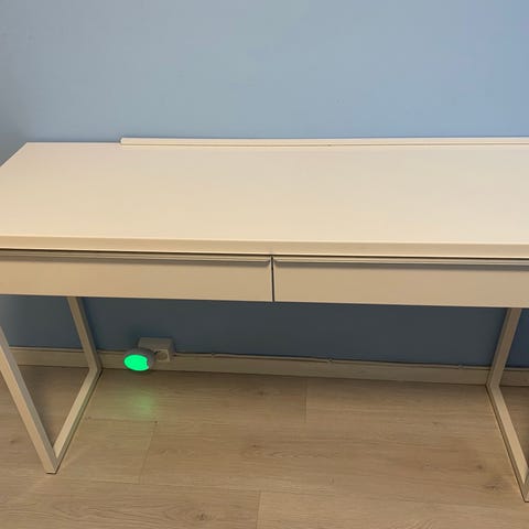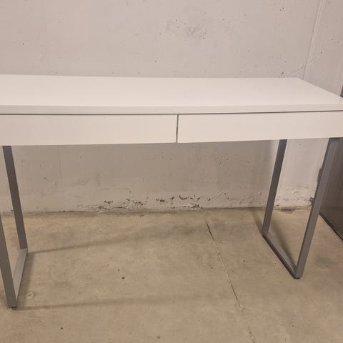 Pent og lite brukt skrivebord som har blitt benyttet på hjemmekontor. Passer godt til smale rom. To praktiske skuffer. Selges pga flytting. Er montert og må derfor hentes.