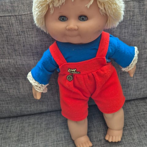 Dukke med blondt hår kledd i sommerklær. Dukken har ermeløs topp med motiv, shorts i flere farger og oransje sandaler. Det følger med et oransje surfebrett/bodyboard med hvite striper og snor. Egnet som lekedukke for barn og til rollelek med strand- og sommertema.