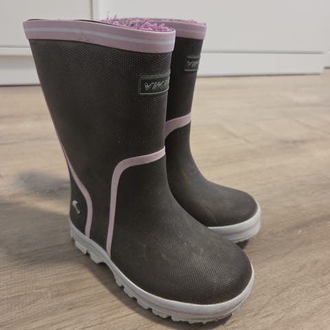Viking gummistøvler for barn i størrelse 23. Modellen er unisex og har rosa farge med mønster og motiv på siden. Støvlene har kraftig såle med godt mønster for bedre grep på vått underlag. Laget i vanntett materiale som passer til bruk i regnvær og våte omgivelser. Egnet til hverdagsbruk i barnehage og utelek.