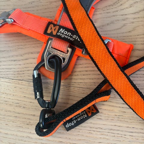 Non-stop Dogwear kobbel i svart farge. Kobbelet har karabinkrok i metall for feste til halsbånd eller sele. Refleksdetaljer langs båndet gir bedre synlighet i mørket. Egnet til turbruk med hund.