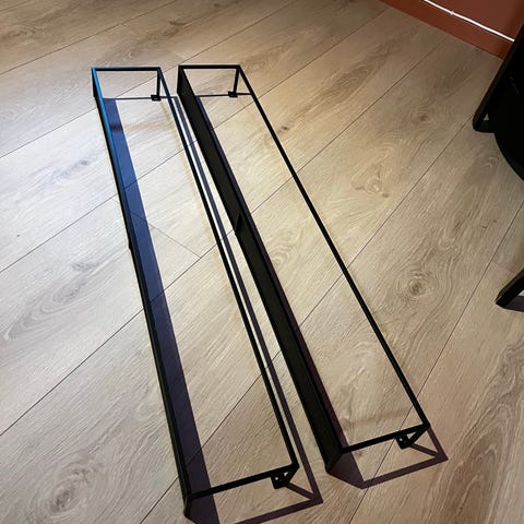 To stk Pythagoras konsoll / knekter f.eks til hyller fra Maze i messing/gull. Selges fordi jeg kjøpte for mange. De har noen små merker i lakken, men på siden som vil vende inn mot veggen når de er hengt opp, så ikke synlig når de er tatt i bruk (se nærbilder). Ny pris: 545 for to stk. Kan henges opp på mange ulike måter!