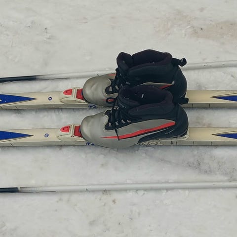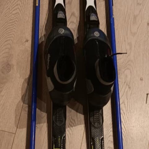 (Fine ski, men den ene skia har "falmet "litt på tuppen, helt ubetydelig, kun kosmetisk)
