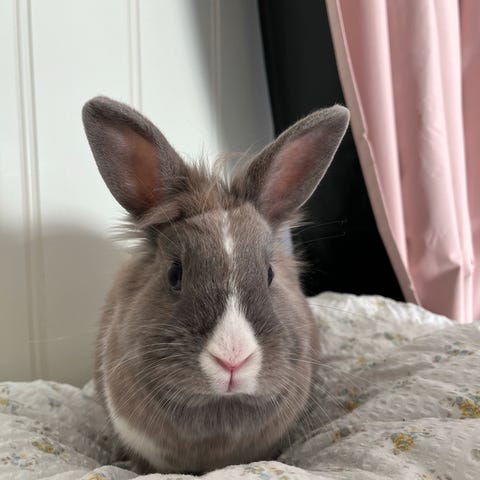 Minnie ble født 22.mars 2024 og er ikke kastrert, hun er blanding av dvergvedder og angora