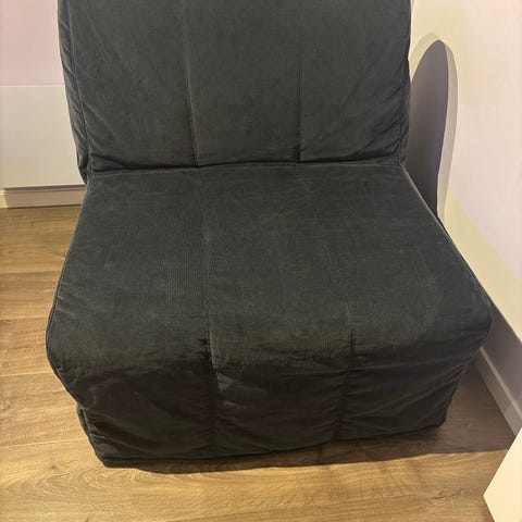 Lenestol / sovestol som kan gjøres om til gjesteseng. Type Vallentuna fra IKEA. Denne er veldig praktisk! Ryggstøtta er avtagbar, slik at den også kan brukes som en puff / sovepuff.