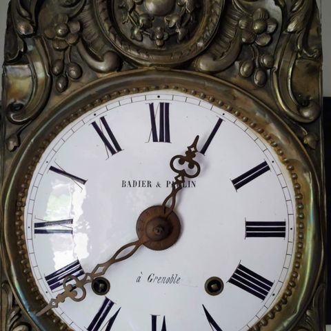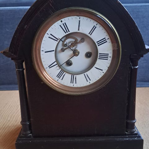 Klokken er ikke nylig servet og selges uten garanti for presisjon, men fungerer slik den står nå.