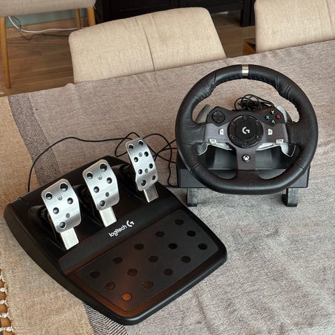 Jeg velger nå å selge mitt logitech g920 ratt med logitech pedaler. Dette har vært et fantastisk ratt for meg som er nybegynner.