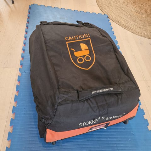 Stokke PramPack transportbag til barnevogn. Egnet for trygg transport og oppbevaring av barnevogn under reise. Baggen har tydelig merking og er utformet for å beskytte barnevognen mot slitasje. Passer til de fleste barnevogner.