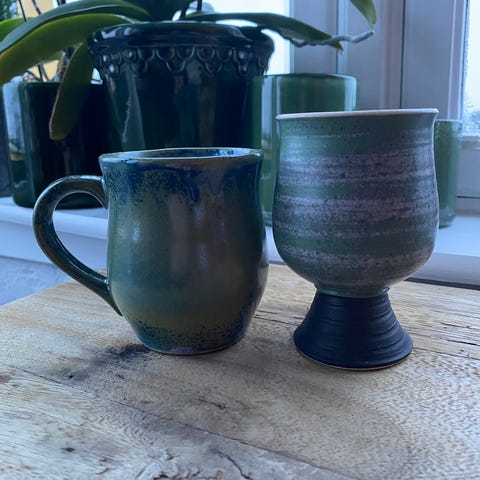2 vakre keramikk kopper - laget av keramiker Karin Helgeby, Arendal.