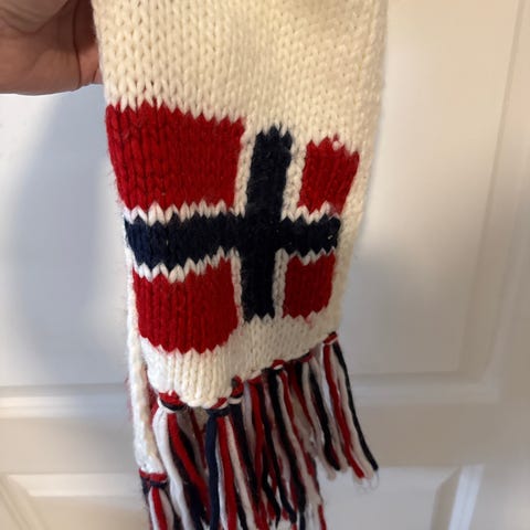 Vær med på å heie frem Norge ! Varme OL-skjerf i tykk bomull med norsk flagg. Forskjellige størrelser og farger ! PRISEN VARIERER ETTER STØRRELSE