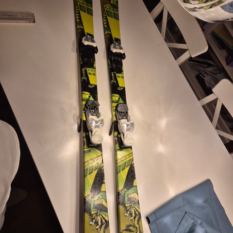 Selger Twintip ski 129cm fra K2 i god tilstand, inkl. binding som kan justeres, selges pga overgang til lengere ski. Han har brukt sko i 285mm men kan justeres både til mindre eller større sko.