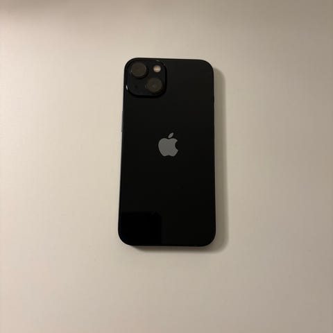 Selger en nesten ny iPhone 15 Plus med 128 GB lagring.