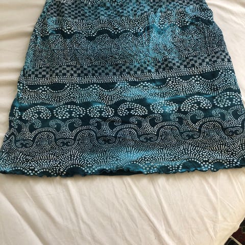 Kult skjørt fra Desigual i viscose. Svart med blågrønne og turkise detaljer. Rekker til litt over knærne. Meget pent brukt.