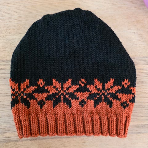 Håndstrikket lue med flettemønster