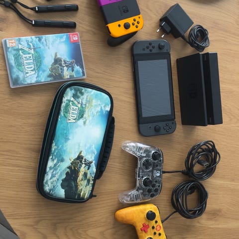 Nintendo Switch + 2 par Joy‑Cons + Mario-brettspill – Nesten ikke brukt! 🎮