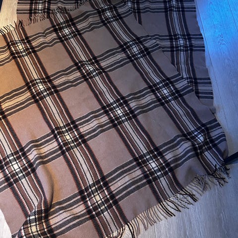 Et pent rødt-hvitt Berger pledd i 100% ull