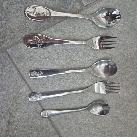 Bare noe barnebestikk, ikke lyst til å kaste, kan brukes og kanskje som leker til litt større dukker som skal mates, når barn synes det er morro å leke med og stelle dukker.