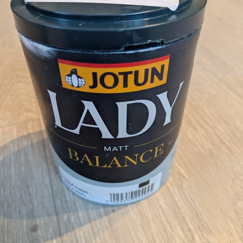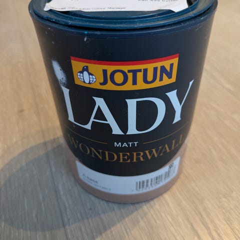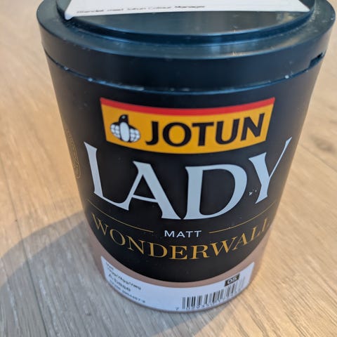 Selger et godt over halvfullt spann Jotun Lady Wonderwall 2,7 liter i fargen 1001 Egghvit (fargekode NCS 0502-Y).