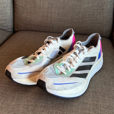 Adizero Boston i str 42 - Ikke riktig passform, så de selges etter et par runder innendørs på mølle.