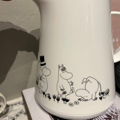Arabia Mummidalen salt- og pepperbøsser. Sett med salt- og pepperbøsser med motiv fra Mummidalen. Egnet til servering av salt og pepper på bordet. Passer til daglig bruk eller som del av en samling med Mummi-servise.